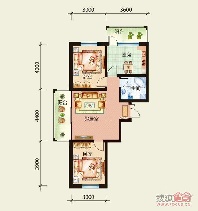 M3-C54.04平米两居