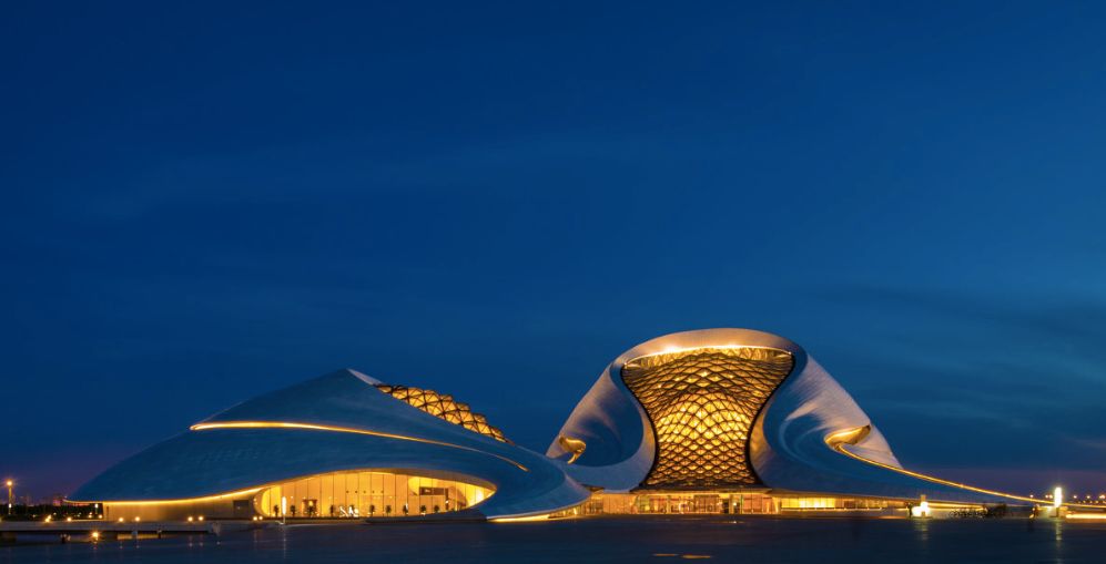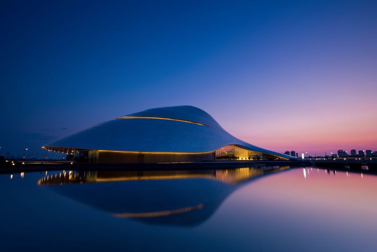 哈尔滨大剧院是哈尔滨的较新标志性建筑,优美的建筑曲线如同行云流水般顺畅自然,与周围的湿地景观浑然一体。