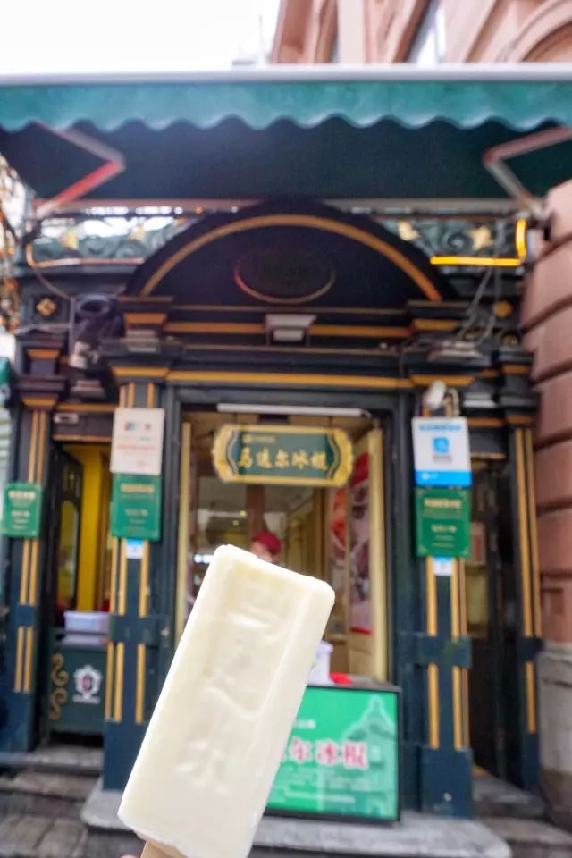 仅在中央大街上的马迭尔冷饮厅出售,冰棍没有外包装,口味很少,价格不贵,店铺门口经常大排长龙。