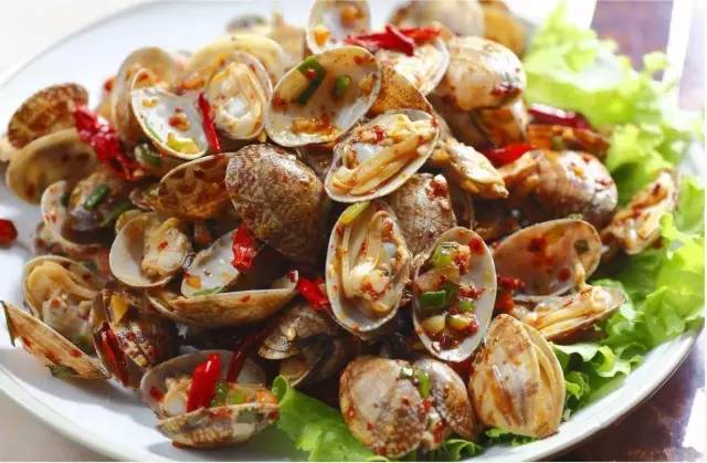辣炒蛤蜊:作为青岛十大特色小吃之一,更是别具风味。此小吃的特点是:刚入口不怎么辣, 辣味逐渐渗透,很有回味。