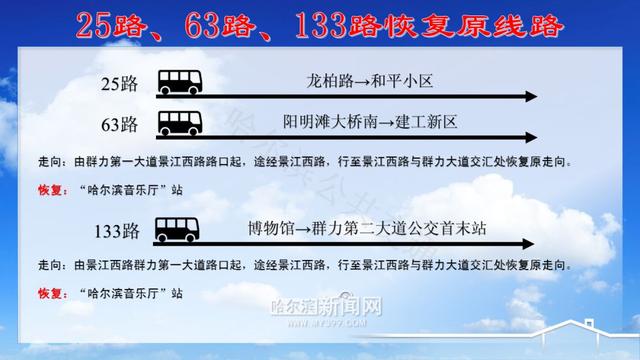 哈尔滨公交25路、63路、133路、220路恢复原线路