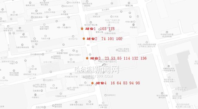 站台3:新设(西八道街南侧,哈尔滨银行门前)