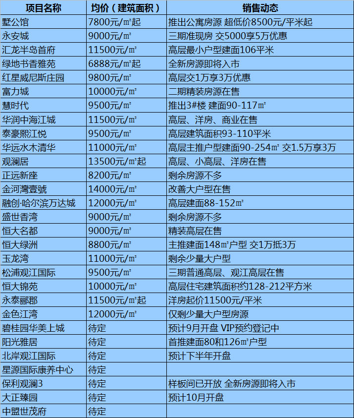 这一两年的时间,哈尔滨的房价已经涨到了需要限价的程度。那么,目前哈尔滨楼市价格到底啥样呢?今天,小编整理了全哈尔滨市所有在售待售住宅楼盘的销售价格,让您一目了然就能了解哈尔滨楼市。