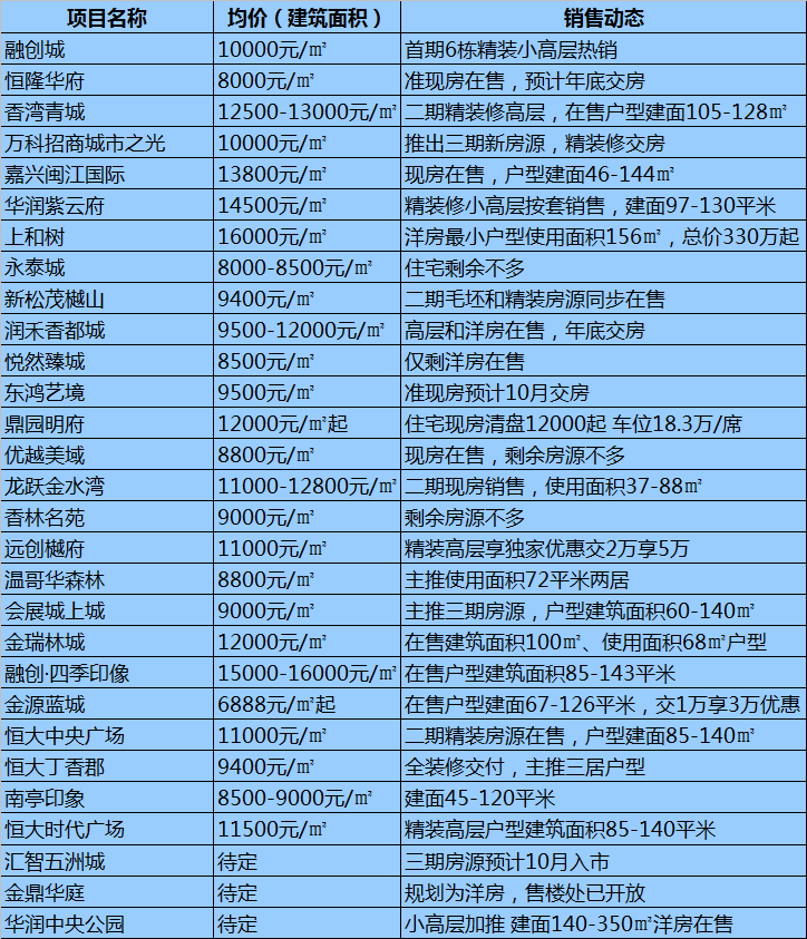 香坊区和松北区楼盘数量是所有区域中最多的。受哈西群力房价走高和楼盘逐渐饱和因素影响,自2017年下半年开始,开发商和购房者将目光转移至香坊区,一批新盘拔地而起。与此同时,价格也从原来的8000元/平米涨至目前的万元以上。香坊区也是精装楼盘最集中的区域,共有9盘。