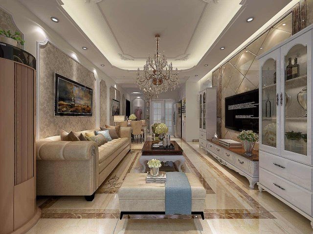 【装修案例】哈尔滨辰能溪树庭院装修,哈尔滨装修效果图 【装修风格】欧式 【使用面积】90平 【风格感受】欧式风格具有强烈的文化内涵,有强烈的独特性文化潮流。现在欧式也并不是你想象中的那种金碧辉煌,更多显现一种高贵大气。 哈尔滨装修 客厅全视角,所选家具以及基本造型都是比较复杂的,符合欧式的传统,但整
