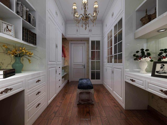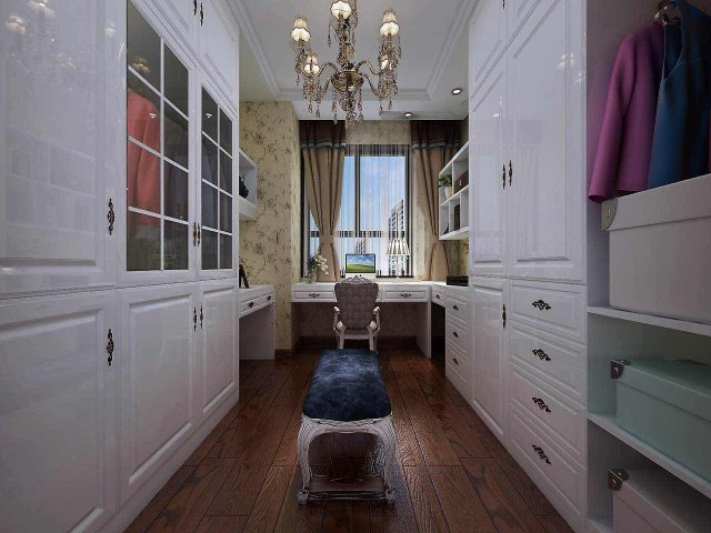 衣帽间+书房的装修设计,传统和时尚的有机结合,简单实用。