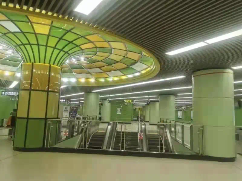 标准站在设计上提取欧式元素中的网格、线角重新排列组合,融合在地铁车站的墙面、地面、天花中,在灯具表面附加欧式建筑特有的符号进行点缀,呈现现代化设计中的古典美观。重点车站在设计上结合地域文化和周边环境,提取元素进行重组,选取特殊材料及造型,进行重点展现。