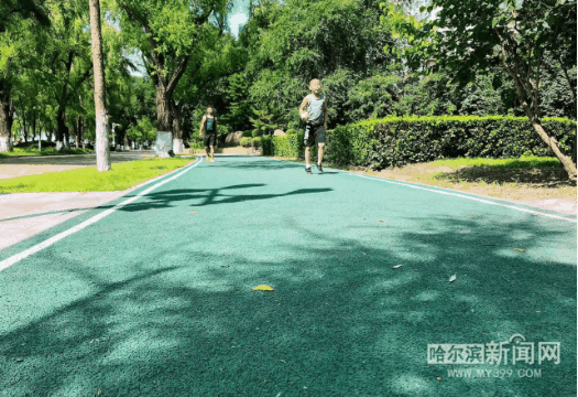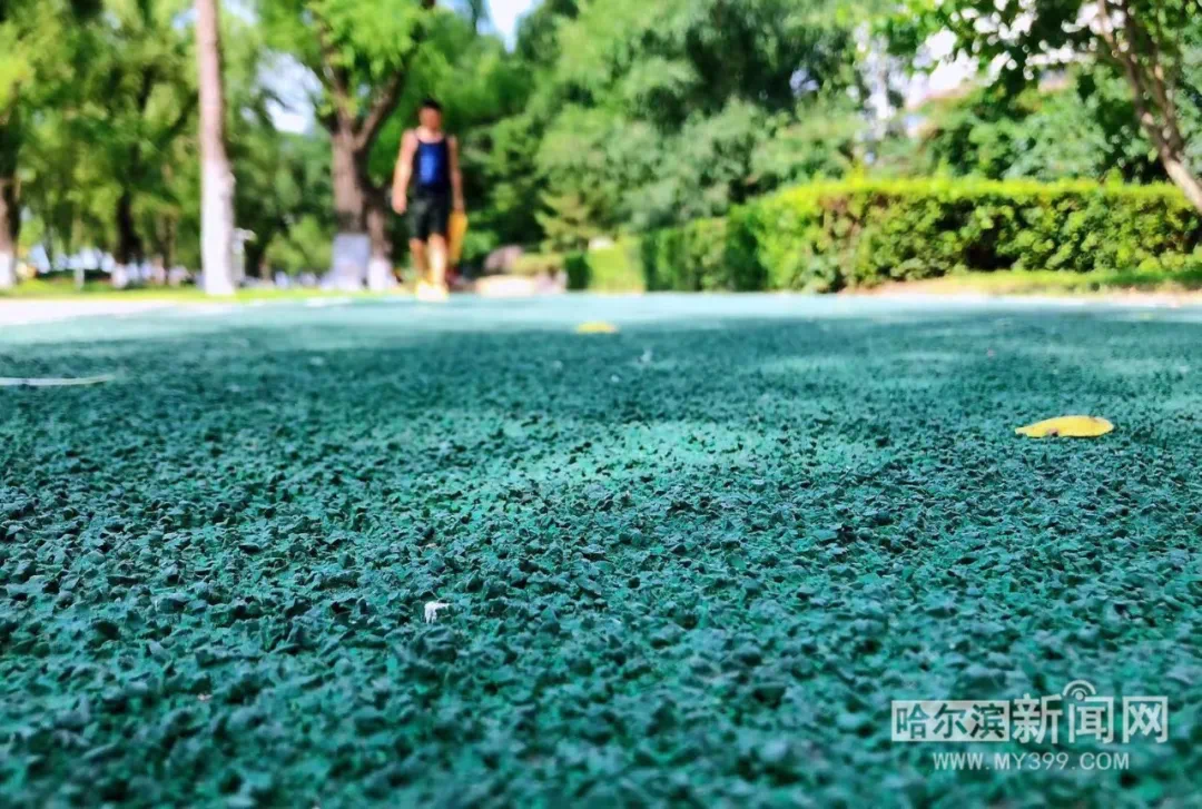 22日,道里区九站公园内,绿色塑胶慢行道建成投用。该绿色慢行道沿九站公园主路南侧修建,宽3米,由塑胶颗粒铺设而成。