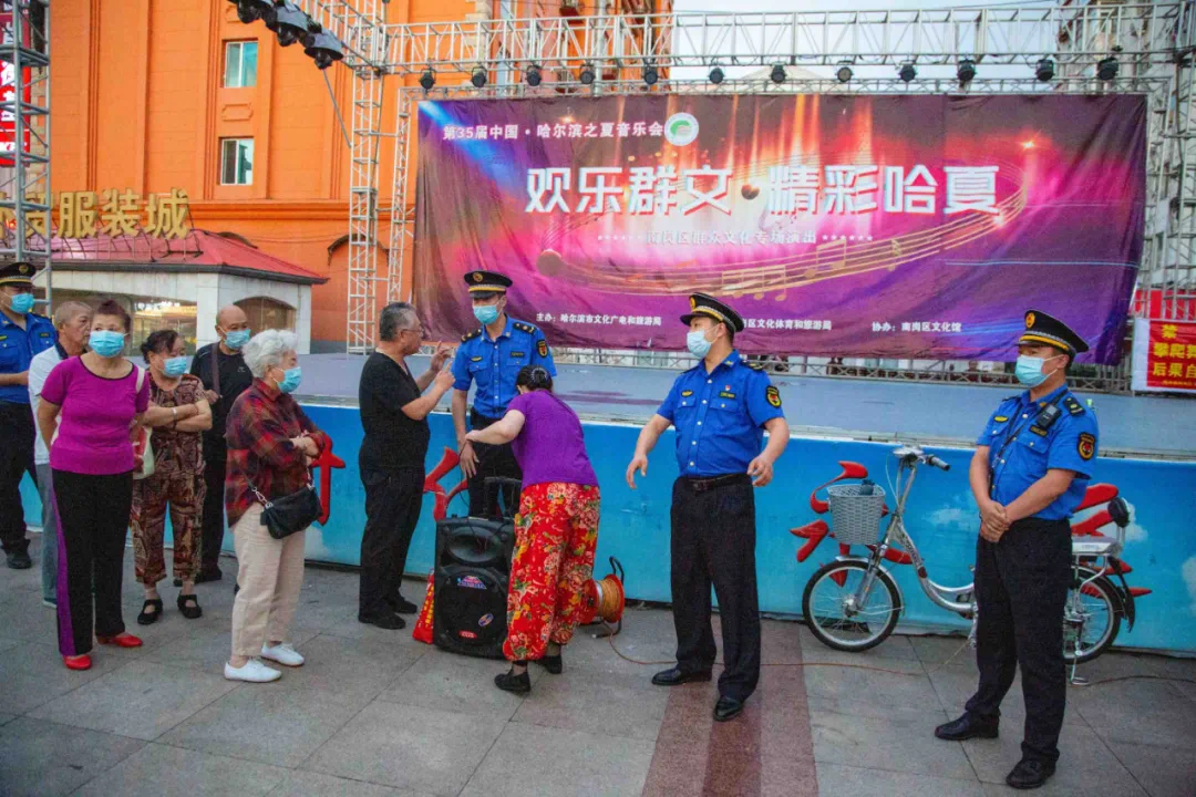 8月3日,南岗综合行政执法局联合街道办、公安、环保、社区等部门,对南岗区广场舞集中区域进行现场督导。为了巩固疫情防控成效,避免聚集,执法人员现场对跳广场舞的市民进行的劝离。