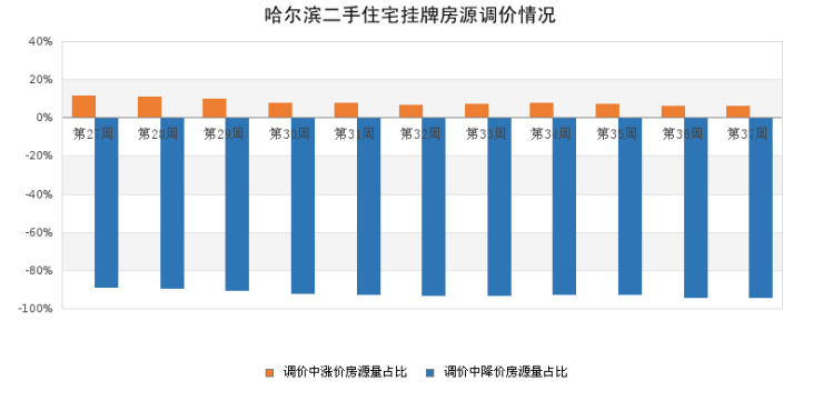 二手房市场周报|2021年第37周哈尔滨市场均价上升,环比上升0.01%