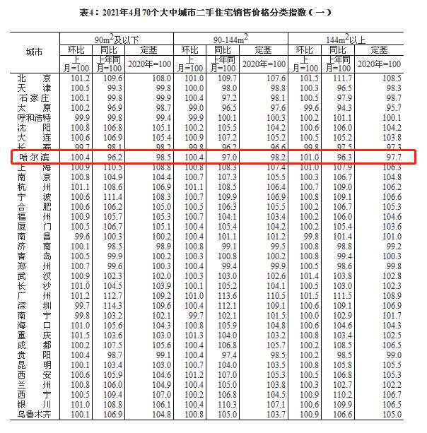 5月17日,国家统计局发布4月70个大中城市商品住宅销售价格变动情况,62个城市新建商品住宅价格环比上涨,重庆环比上涨1.4%,涨幅较高,呼和浩特、秦皇岛和常德3个城市新建商品住宅价格与上月持平,5个城市新建商品住宅价格下降,环比较大降幅为0.3%。其中哈尔滨新建商品住宅价格环比上涨0.2%,二手住宅价格环比上涨0.5%,价格三连涨,楼市逐渐回暖。