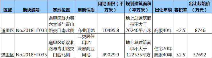 截止至10月31日,哈尔滨还有两宗建设用地即将拍卖,均位于群力西区,一宗为商业用地,一宗为商住混合用地。