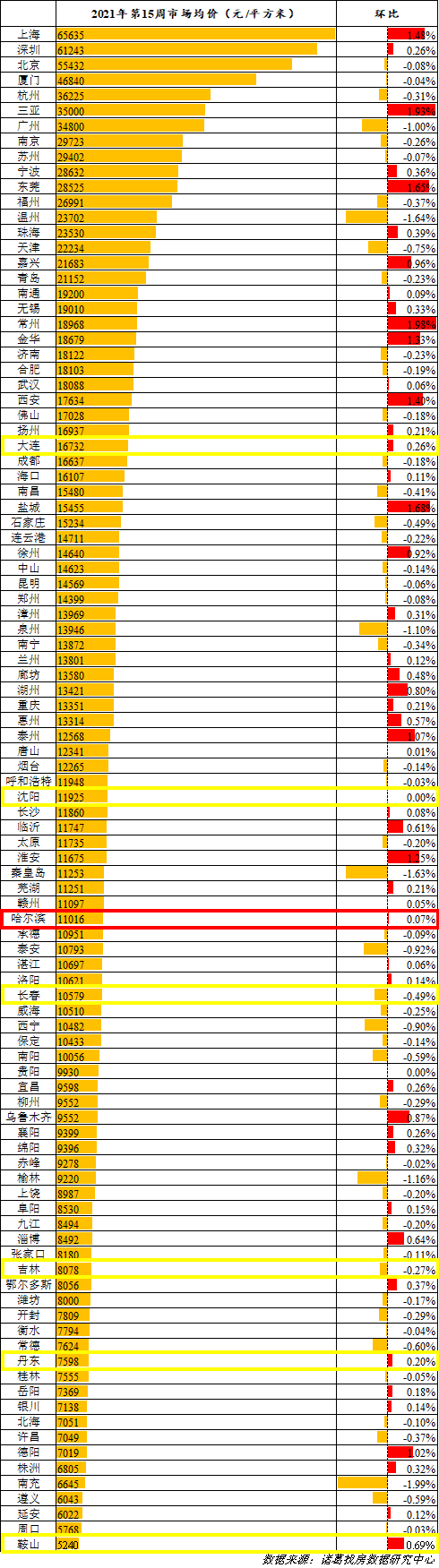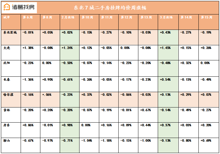 东北7城3涨3降1持平 哈尔滨涨幅0.07%