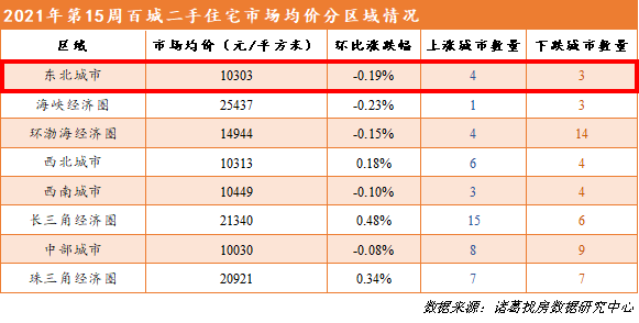 东北城市二手房均价10303元/㎡ 跌幅0.19%