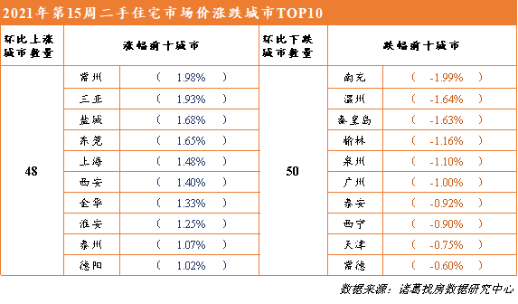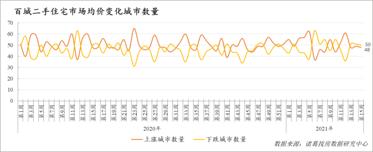 第15周百城二手住宅市场价格环比上涨0.15%,涨幅收窄0.16个百分点