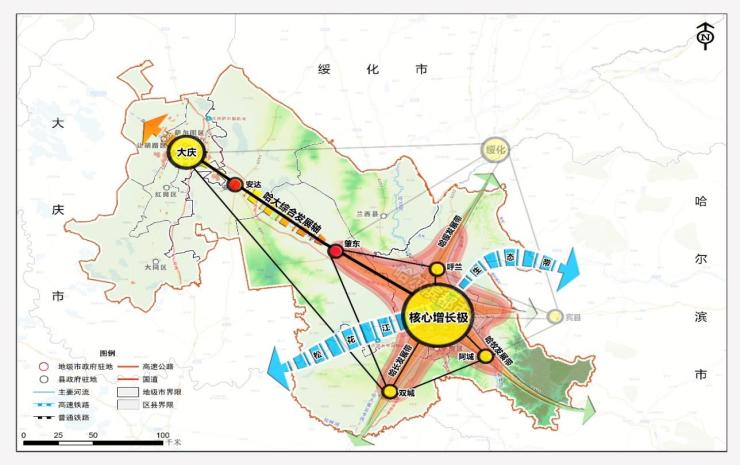 不难看出,打造以哈尔滨为中心的一小时、两小时经济圈,是省委省政府做出的重大战略部署,作为其实现的主力军,哈大绥一体化战略被很多人给予厚望。而选择绥化、大庆加入冰城的“朋友圈”也有诸多的考量:一方面,绥化可充分承接哈尔滨发展的溢出效应,快速聚集人流、物流、资金流和信息流,可以助推、协同、支撑哈尔滨发展;另一方面,资源型城市的大庆,可进一步发挥城市辐射带动功能,建设百年油田,争当全国资源型城市转型发展排头兵。