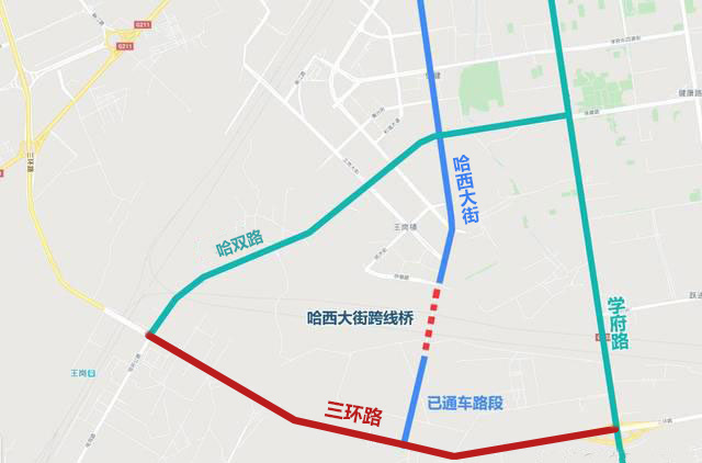 哈西大街是哈西连接三环、哈南和学府路的一条重要道路,目前哈西大街打通工程一期(三环路至南岗区南北路)已经完工,跨线桥预计2021年竣工。