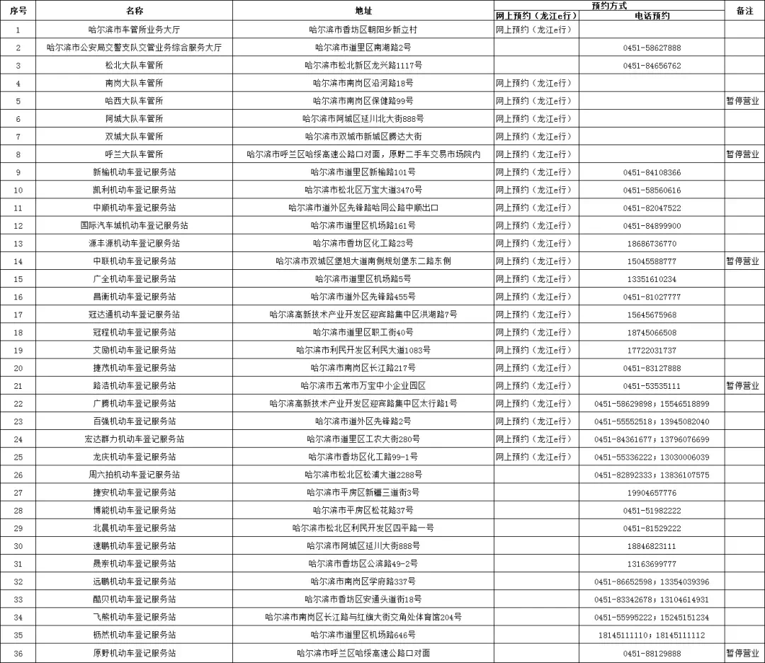 哈尔滨市区内相关交管业务窗口全面实行预约办理