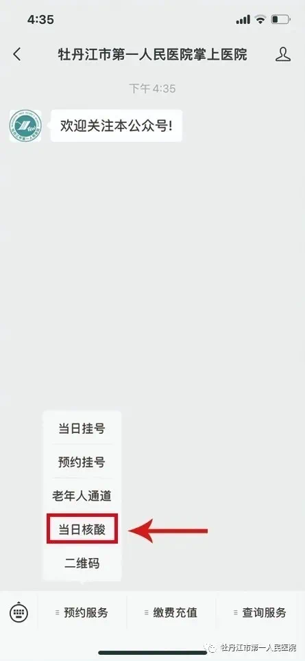 1.关注“牡丹江市排名前列人民医院掌上医院”公众号。