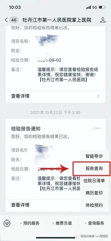 4. 可通过牡丹江市排名前列人民医院掌上医院微信平台自行查询结果。