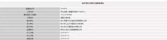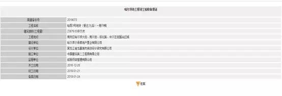 中国房地产报记者在哈尔滨市住房和城乡建设局官方网站查询获知,“证照查询管理系统”公开信息显示,2019年1月24日,哈尔滨市住房和城乡建设局核发了14本《哈尔滨市工程竣工验收备案证书》,工程名称为哈西2号地块(爱达88)工程、哈西3号地块(爱达九溪)一期、二期工程,共计14栋楼,施工承包单位为中国建筑第二工程局有限公司;设计承包单位为黑龙江省龙基城市规划设计研究有限公司,监理承包单位为诚泰项目管理有限公司;建设单位分别为哈尔滨爱达投资置业有限公司的子公司哈尔滨子亿房地产置业有限公司和哈尔滨子承房地产置业有限公司。