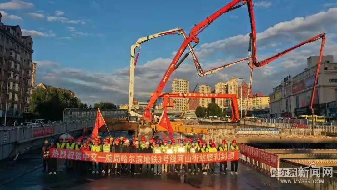 9月12日5时,随着最后一方混凝土浇筑完毕,哈尔滨地铁3号线二期工程“西北环”河山街站顺利完成主体结构封顶,比原计划提前了18天。