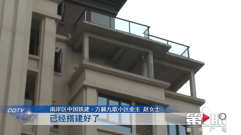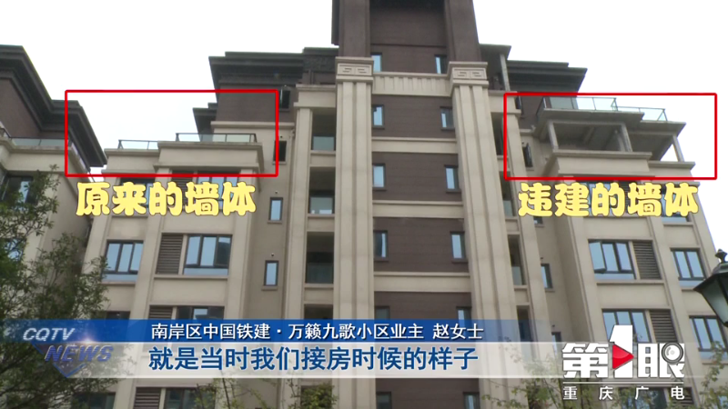 第1眼-重庆广电消息,赵女士在南岸区中国铁建·万籁九歌买了一套房子。前段时间,她发现小区里违章搭建的情况非常严重,不仅有人在底楼挖地下室,而且有人还在楼顶违法搭建。