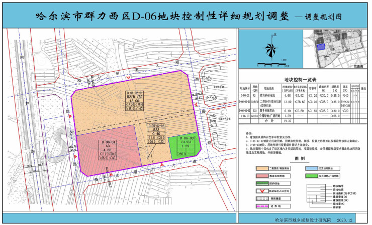 项目名称:哈尔滨市群力西区D-06地块控制性详细规划调整