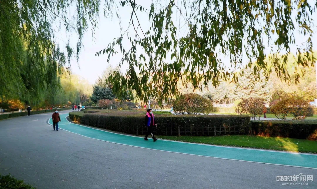 19日一早,道外区古梨园刚刚投用的慢行绿道上,市民们伴着鸟鸣声声,一边沿着蜿蜒的线路拉伸、健步、慢跑,一边欣赏着道路两侧金秋美景,感受景随步移、人景交融的和谐健康之美。