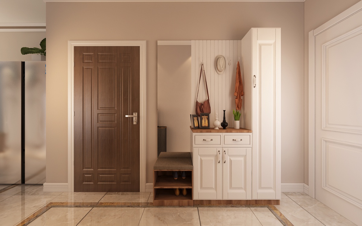 玄关柜不仅解决了入门收纳问题,还能缓解大门正对客餐厅的尴尬。