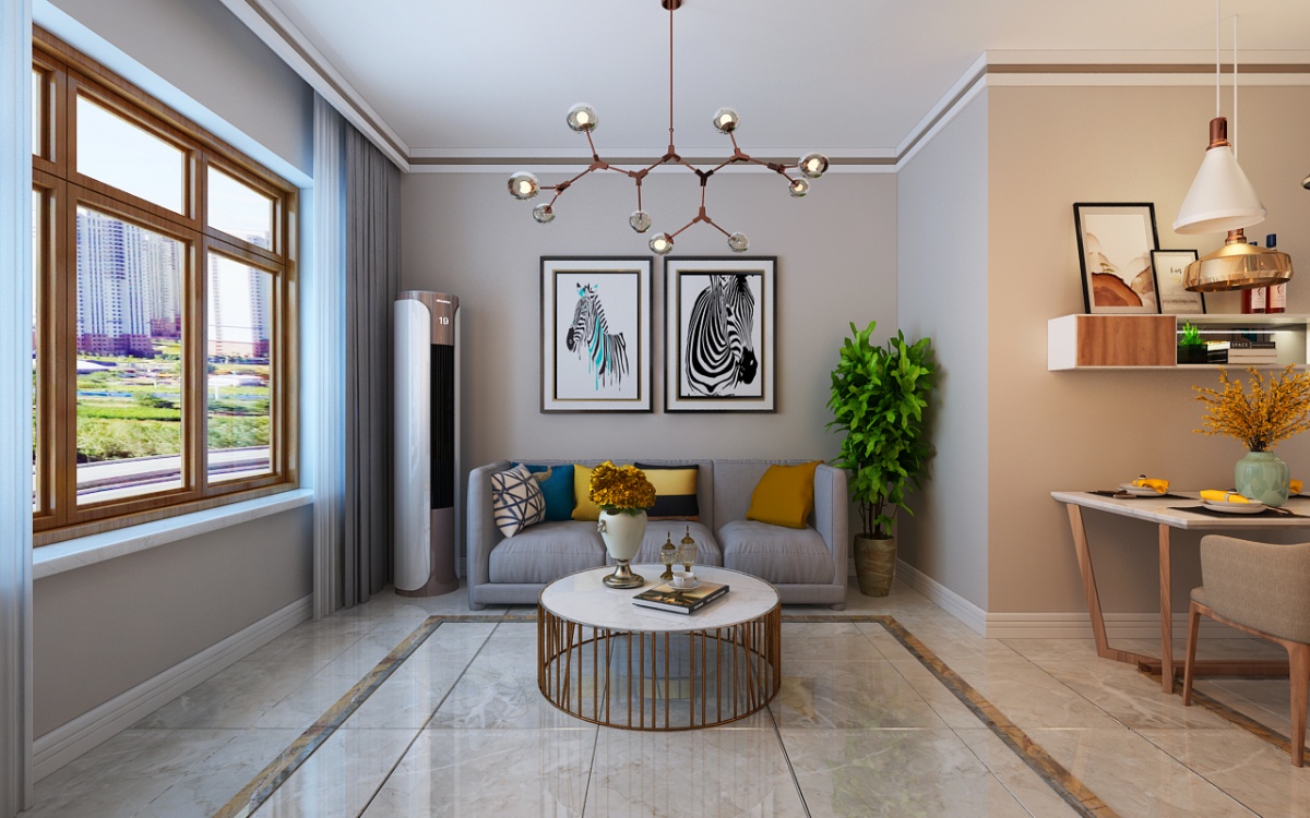 灰色的沙发搭配了两幅艺术装饰画,简单又大气美观,个性的吊灯彰显业主的品味。PART03