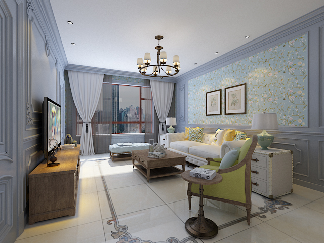 整体图 2018-04-20 12:45:57 美式风格 墙面大多选择墙板作为装饰 高级灰让人感觉特别沉稳 大气 搭配暖颜色壁纸和沙发布艺整体空间更为柔和