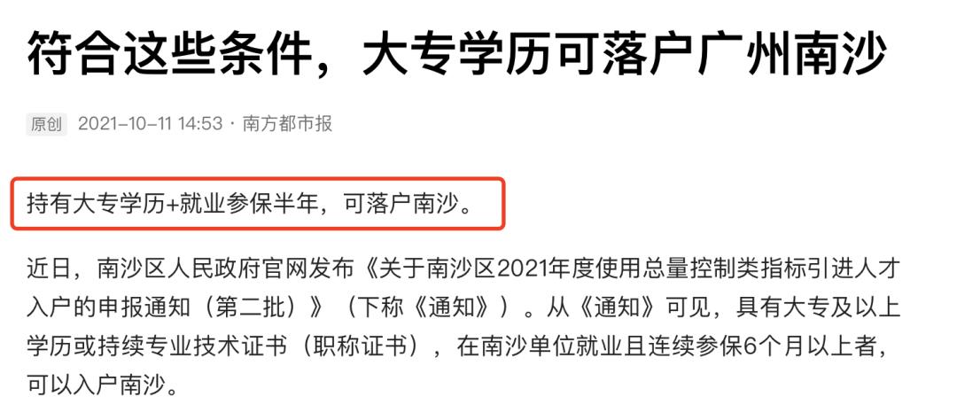 02广州南沙降低落户门槛?不过,就在我撰写这篇文章的同时,还看到一则广州南沙户籍政策放宽的消息。