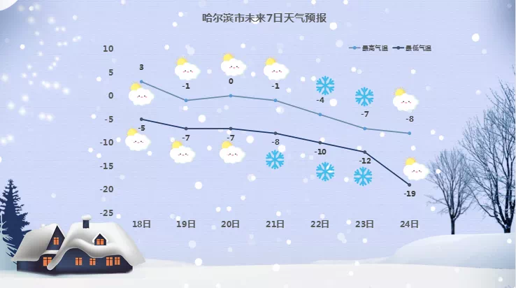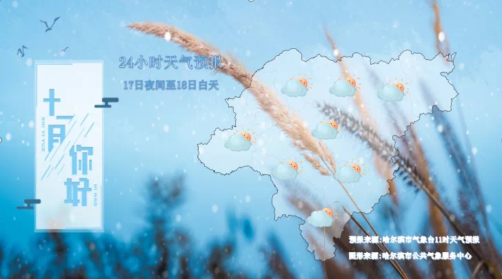 哈尔滨市气象台2021年11月17日11时发布11月17日夜间至20日白天全市天气预报:
