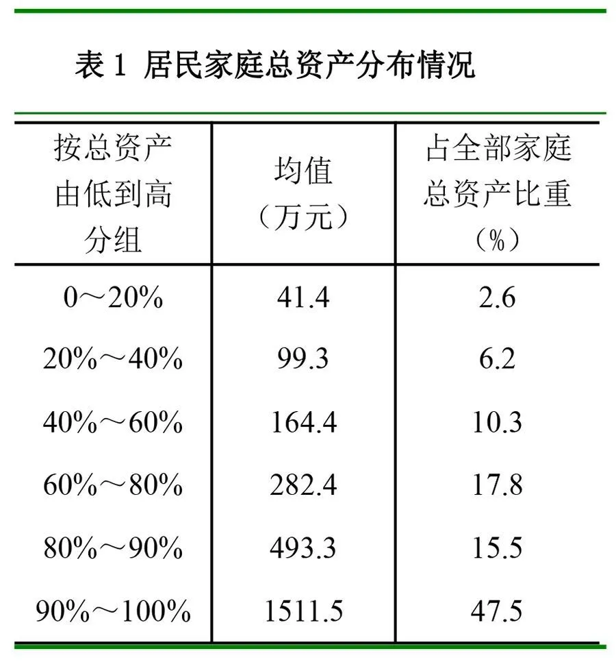 第三,城镇居民家庭净资产均值为289.0万元,分化程度高于资产的分化程度。与美国相比,我国城镇居民家庭财富分布相对均衡(美国净资产较高1%家庭的净资产占全部家庭净资产的比重为38.6%,我国为17.1%)。