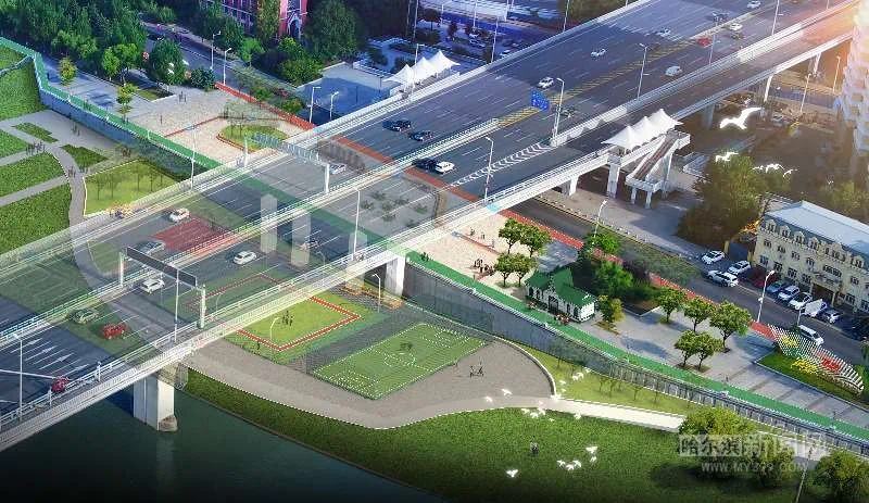 滨洲铁路桥至景阳广场段协调过渡工程共包含四部分。