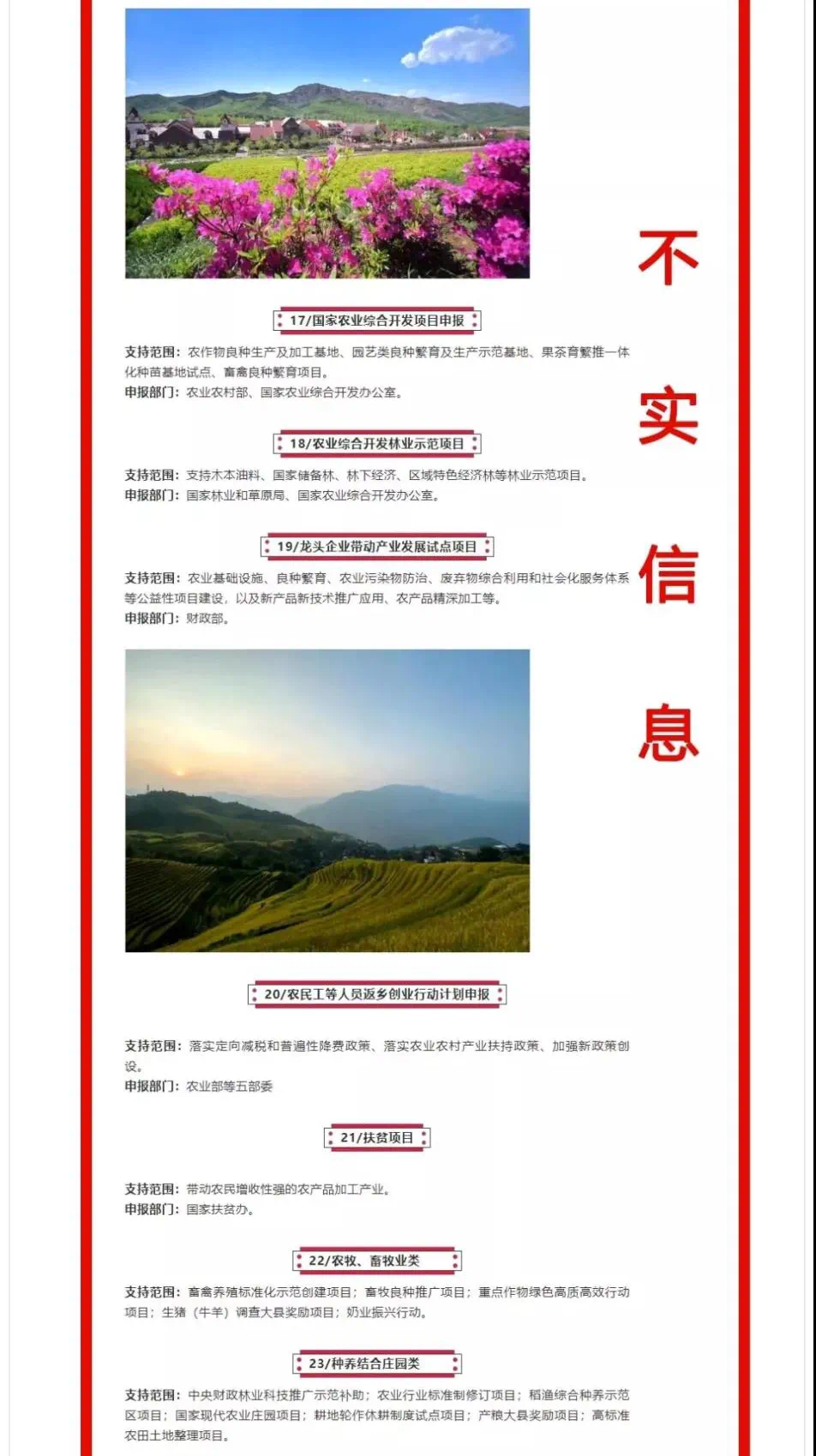 据“国家乡村振兴局”微信公众号消息,今年3月份以来,互联网上频频出现“国家乡村振兴局:23类项目可以申请补贴,数额超千亿”的信息,均系假借国家乡村振兴局名义胡乱拼凑的不实信息。国家乡村振兴局郑重辟谣,社会各界切勿上当受骗。 根据2021年3月26日财政部、国家乡村振兴局等部门印发《中央财政衔接推进乡