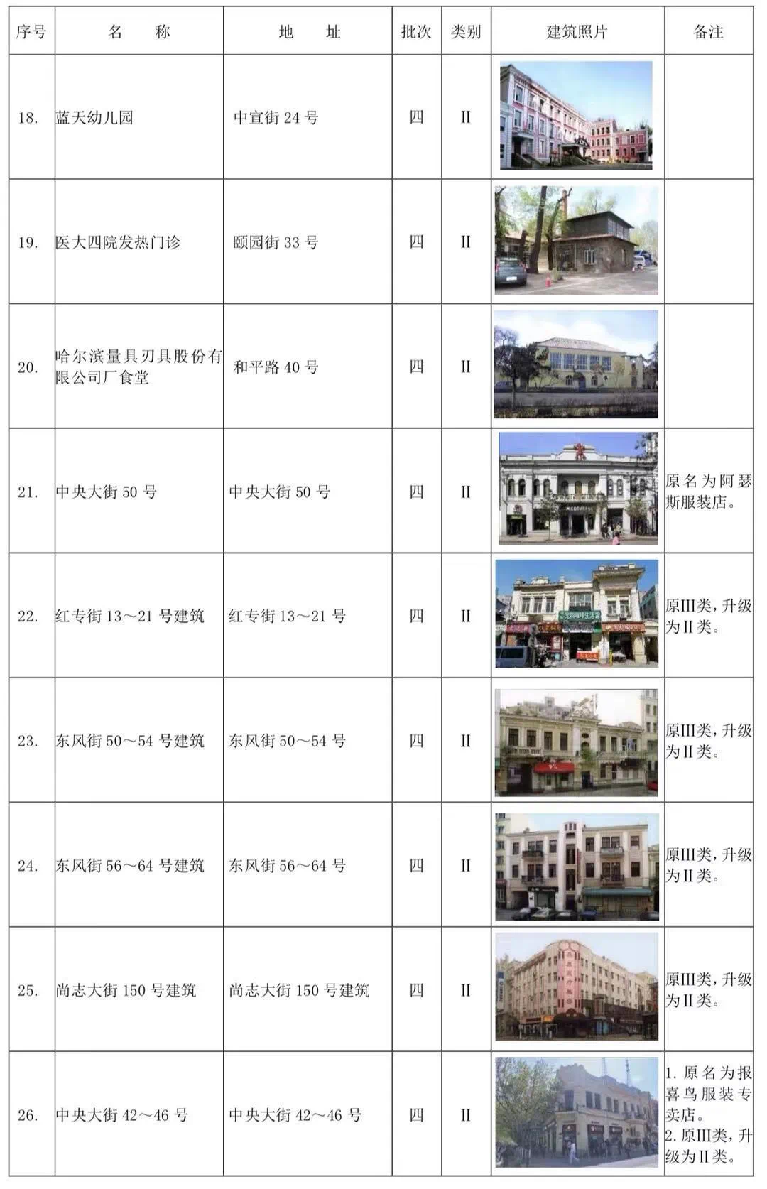 为进一步加强历史文化建筑的保护与管理,根据《中华人民共和国城乡规划法》《历史文化名城名镇名村保护条例》《黑龙江省历史文化建筑保护条例》《哈尔滨市历史文化名城保护条例》规定,哈尔滨市政府拟定批准新增108处第五批历史建筑,并对29处历史建筑保护类别进行调整。
