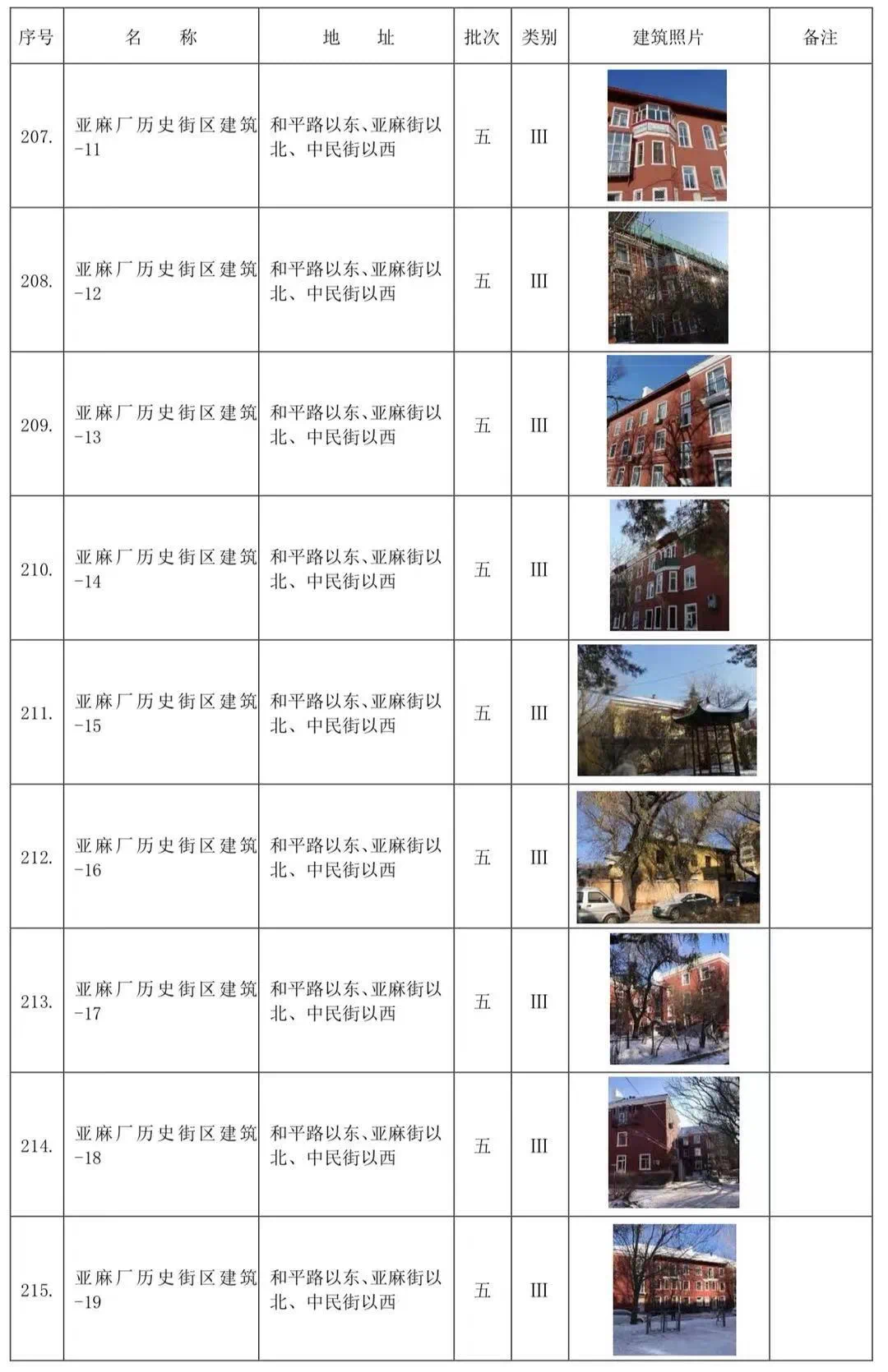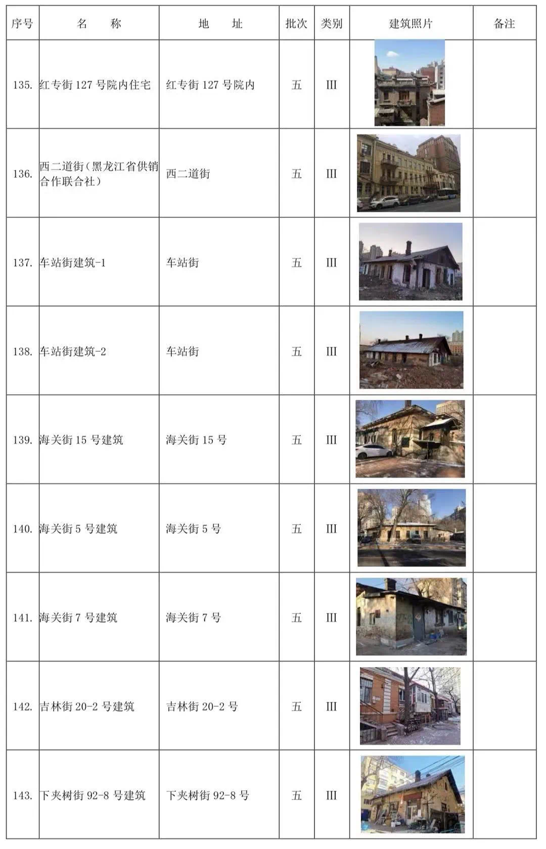 6月8日,记者从哈尔滨市自然资源和规划局了解到,为进一步加强历史文化建筑的保护与管理,根据《中华人民共和国城乡规划法》《历史文化名城名镇名村保护条例》《黑龙江省历史文化建筑保护条例》《哈尔滨市历史文化名城保护条例》规定,哈尔滨市政府拟定批准新增108处第五批历史建筑,并对29处历史建筑保护类别进行调整。目前,全市排名前列至五批历史建筑共计219处。