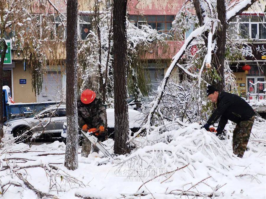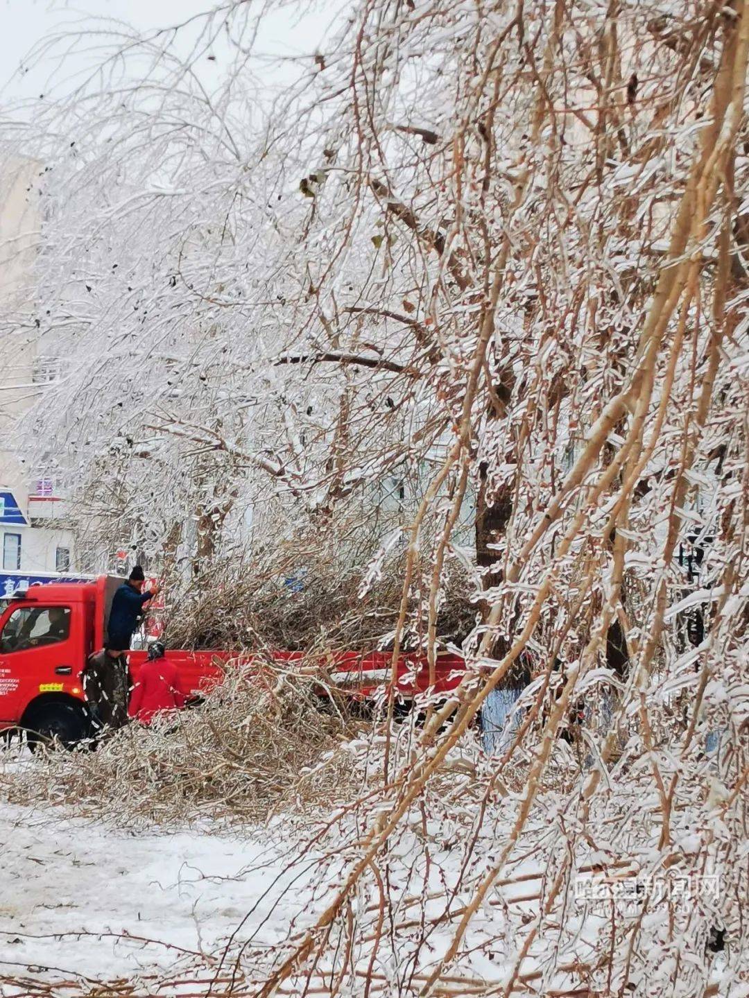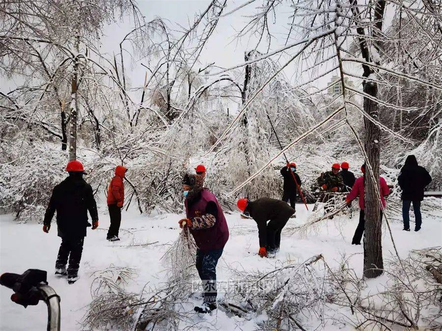 冻雨、暴雪的侵袭,致和平小区内100余棵树木出现树枝折断现象,小区居民出行受影响也有安全隐患。由于清理树木折断工作量庞大,仅靠物业无法完成清理。哈尔滨物业集团向市住建局提出援助请求后,10日,市住建局派出六支应急抢险队奔赴和平小区,配合物业企业开展应急抢险救援。