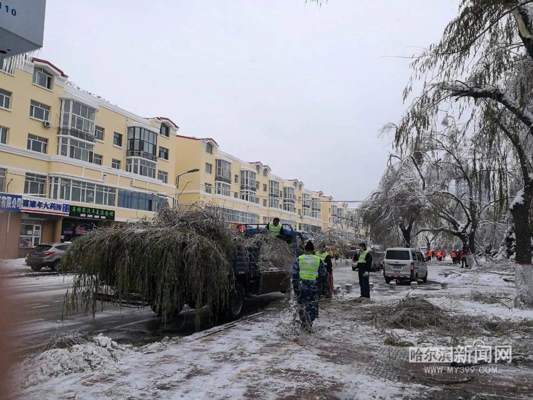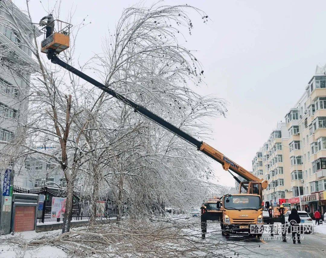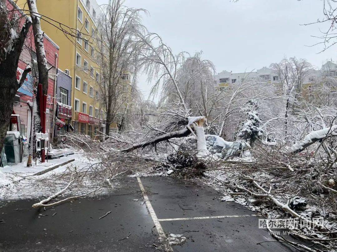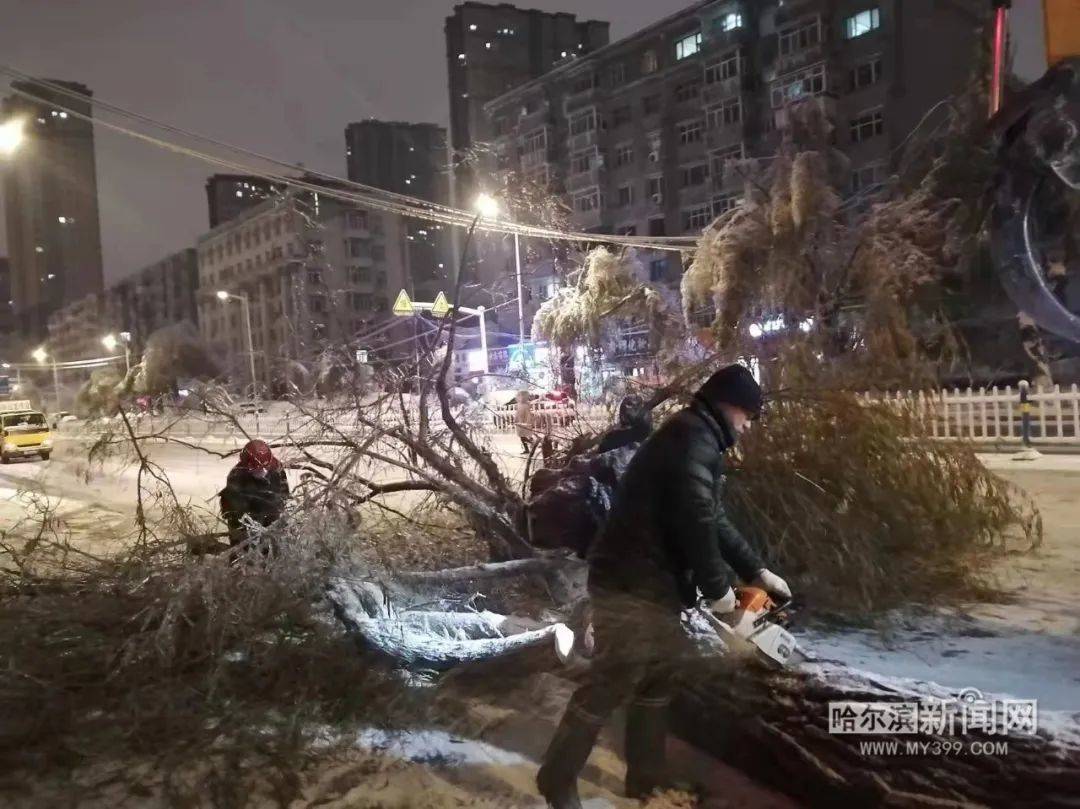 哈尔滨已处理街路倒伏树木5257株、折枝树木3.5万株
