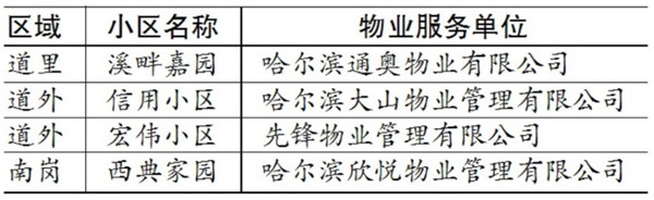 哈尔滨市住建局发布全市住宅小区道路破损及环境卫生整治工作开展情况通报(第三批),54个小区及物业企业表现较好,8个小区及物业企业整治较差,责令限期整改,并计入物业企业信用情况。