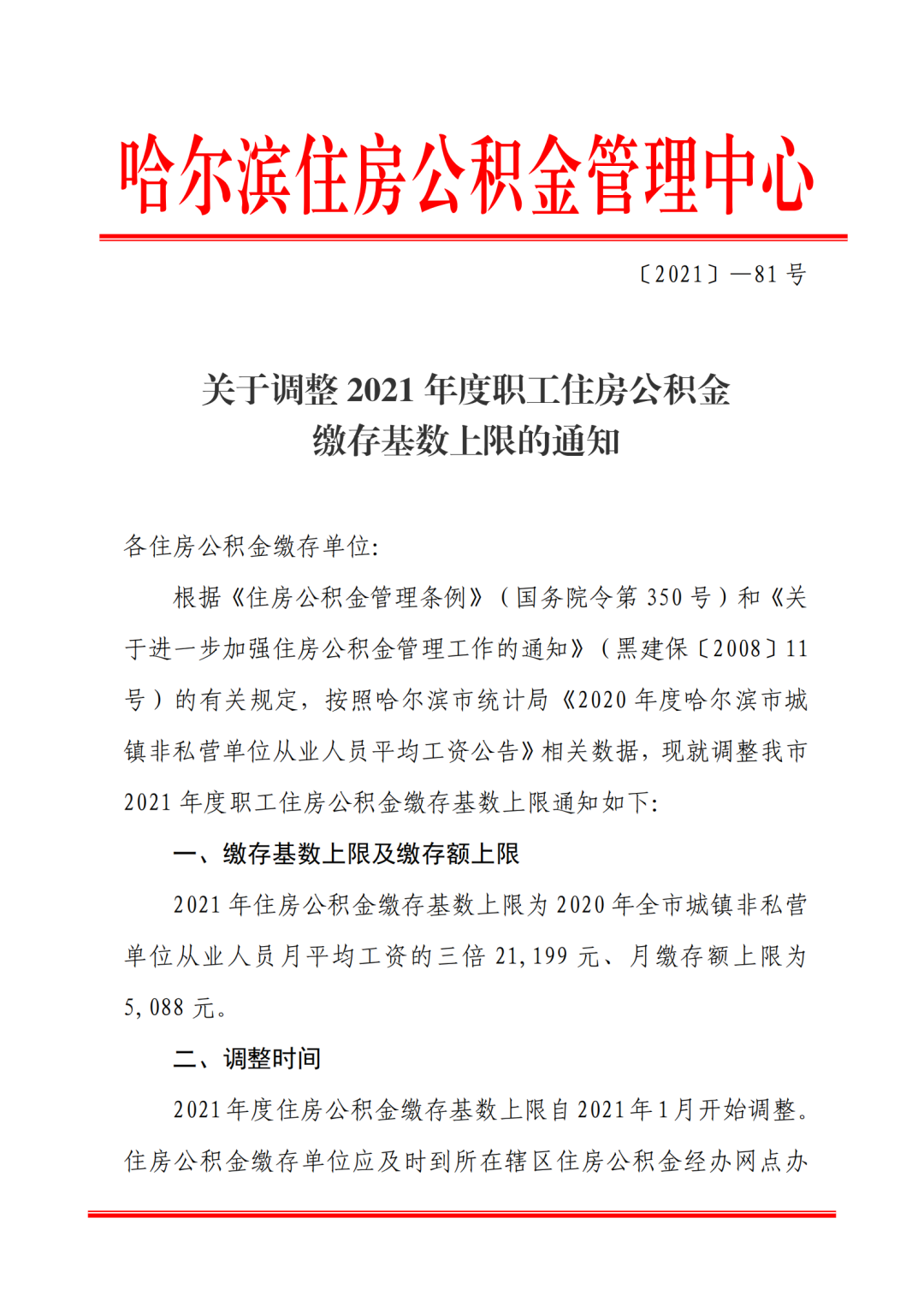关于调整 2021 年度职工住房公积金缴存基数上限的通知