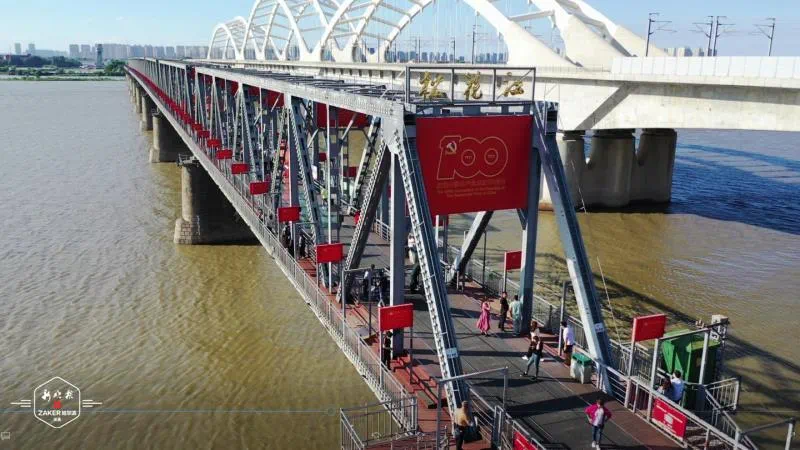 如今在举国上下喜迎中国共产党成立100周年之际在哈尔滨日报社中共道里区委宣传部联合创意、策划和实施下百年滨洲铁路桥将变身“祝福桥”