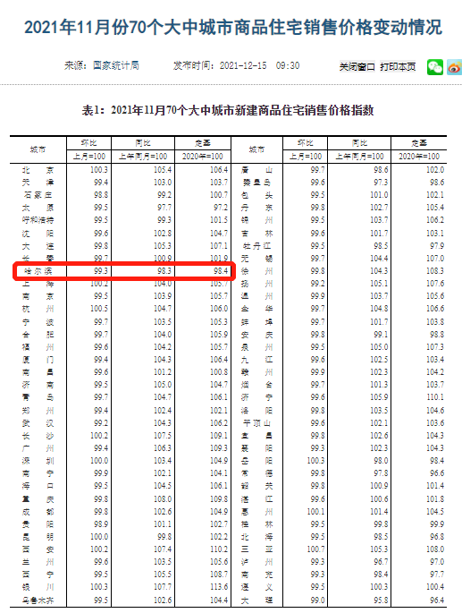 11月70城较新房价变动!哈尔滨房价四连降!
