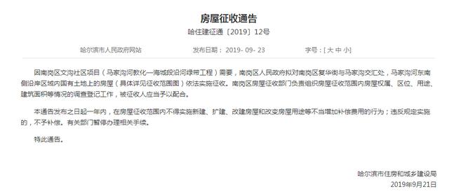 南岗再发房屋征收通告!马家沟、铁路街周边部分房屋将被依法征收